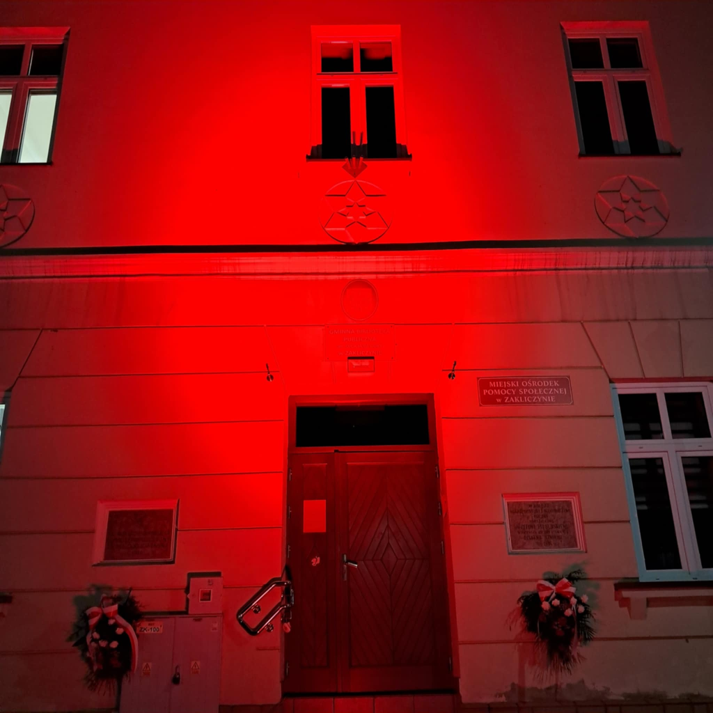 W tym roku po raz pierwszy Gmina Zakliczyn dołączyła do tej akcji – fasada budynku Miejskiego Ośrodka Pomocy Społecznej w Zakliczynie rozświetliła się na czerwono.